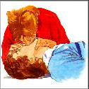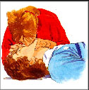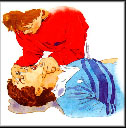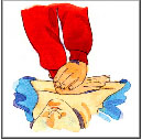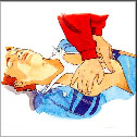 Give 5 quick breaths followed by 1 every 5 seconds (12 per min), until casualty starts to breath. For children under 2 years of age, place your mouth over the casualty’s mouth and nose and give 20 small puffs per min.