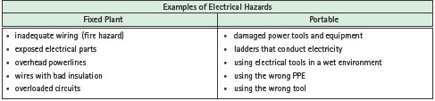 Table 3: Examples of electrical hazards found in the workplace