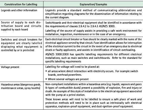 (5) All switches and circuit breakers for equipment shall be clearly labelled displaying what equipment is controlled by or is protected by the said switches and circuit breakers.