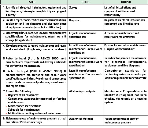 - maintaining a register of all electrical installations and equipment