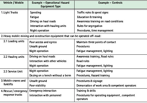 2. Identify operational hazards associated with each type of vehicle or mobile equipment