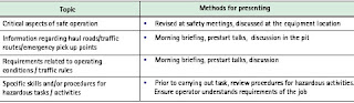 • vehicle and mobile equipment interaction with personnel (spotters, mechanics, shift change) parking practices